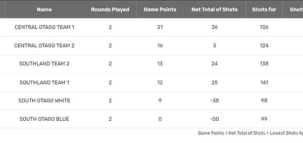 Development Men - Southland 6 wins; Central Otago 2 wins